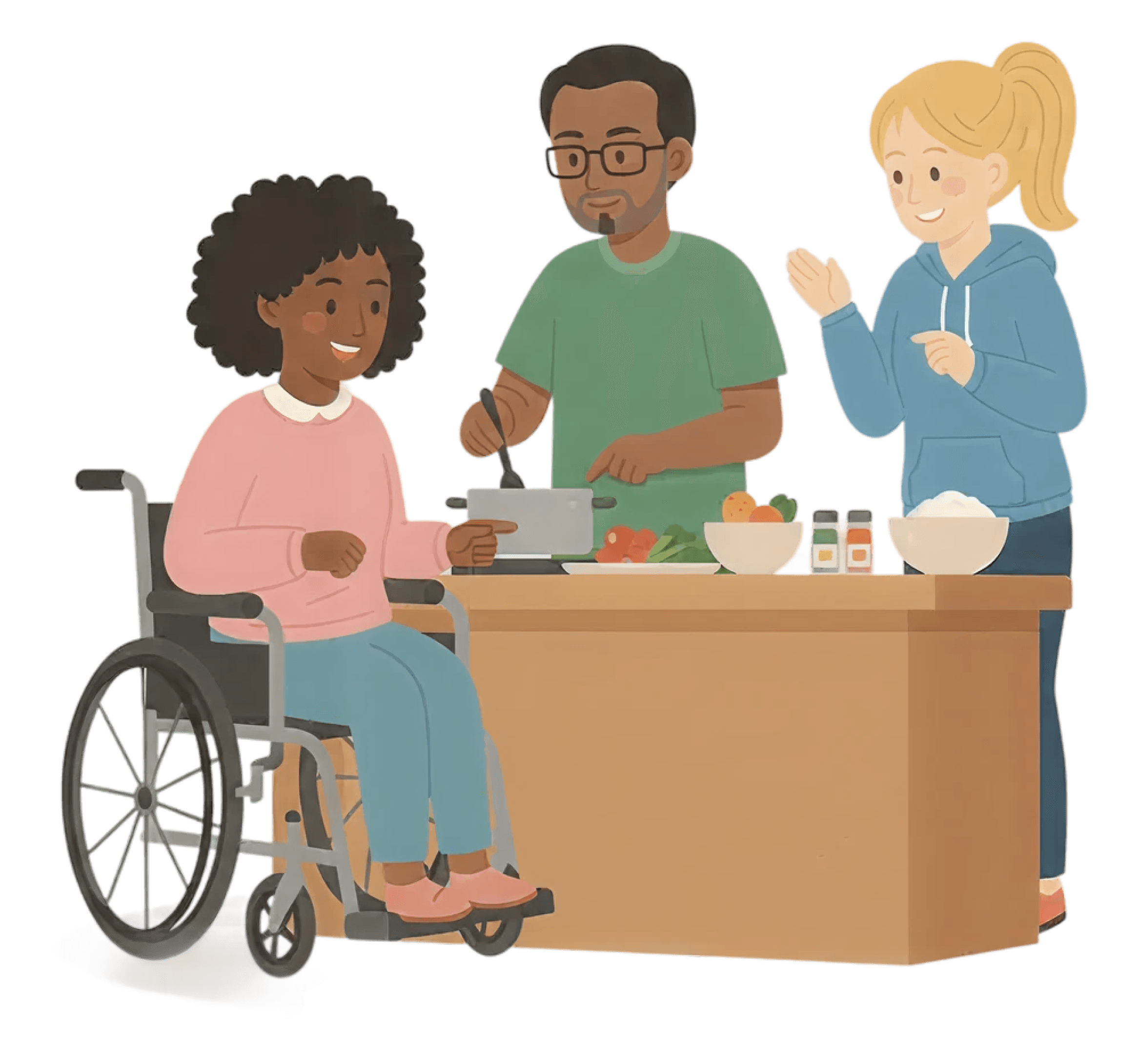Bridge supports help families navigate changing needs at every life stage. We provide guidance, tools, and encouragement to help individuals and caregivers reach their goals—whether transitioning to adulthood, building independent living skills, or strengthening family capacity.